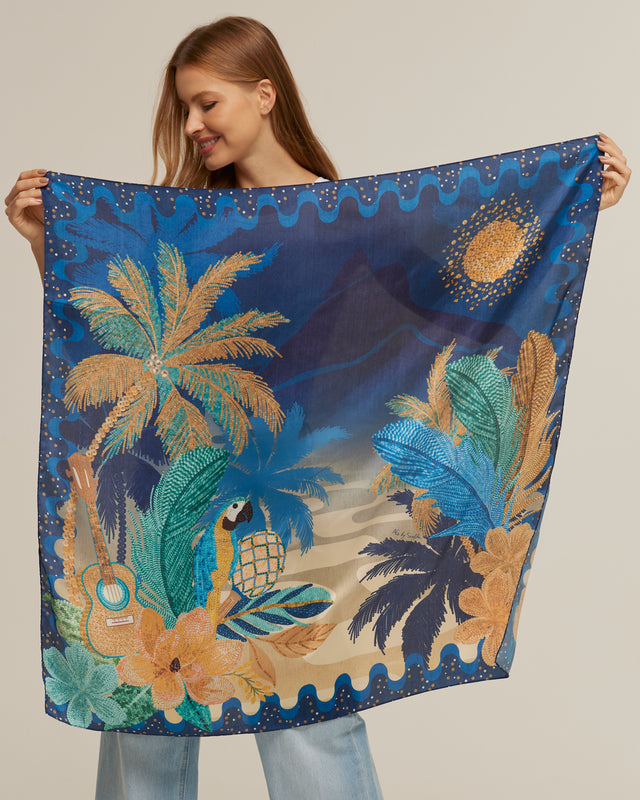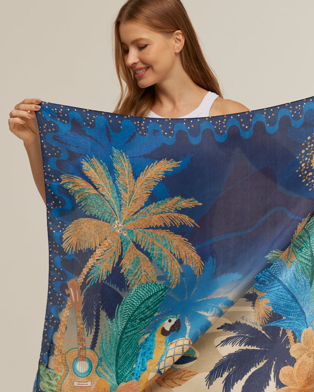 Lenço Encanto Carioca em cetim de poliéster | 90x90cm