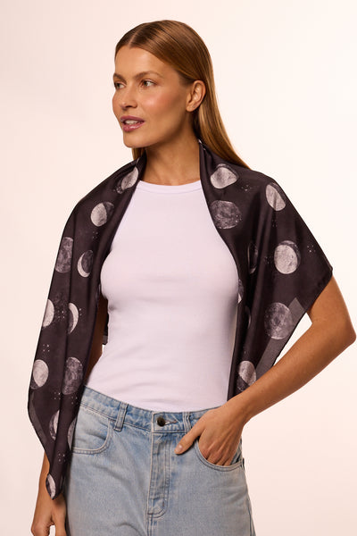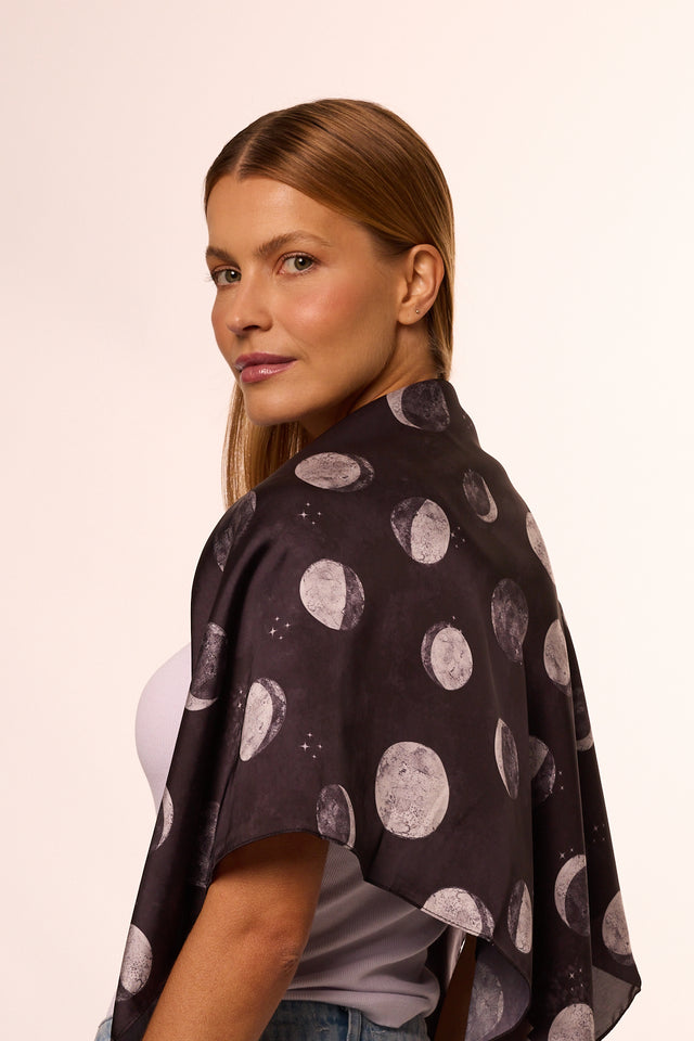 Lenço Fases da Lua em cetim de poliéster | 90x90cm