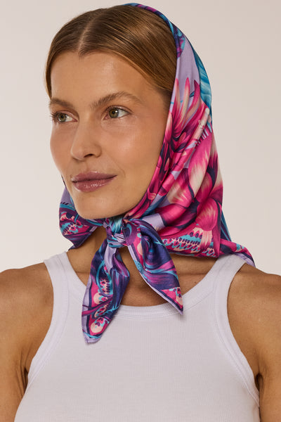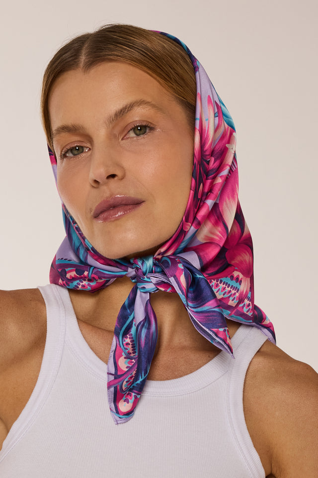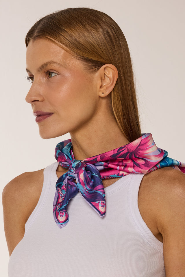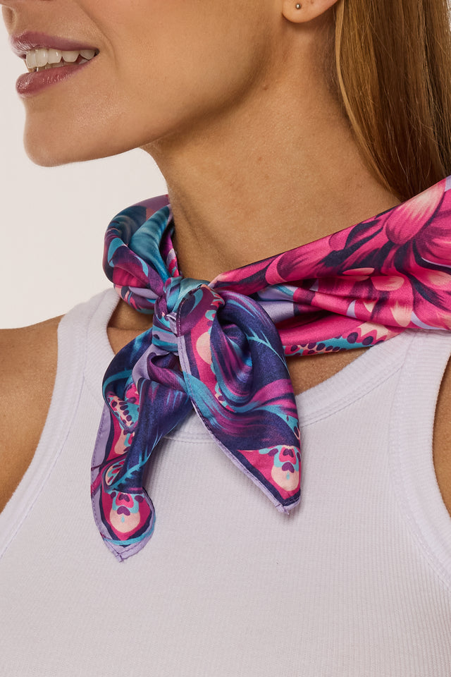 Lenço Flor Flamingo lavanda em cetim de poliéster | 70x70cm