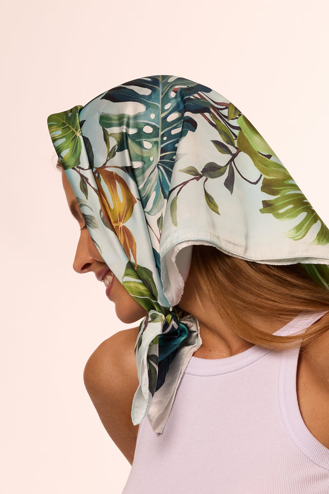 Lenço Folhagem Amazônia em cetim de poliéster | 70x70cm