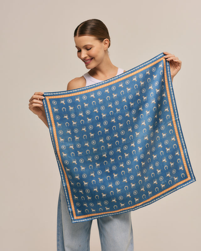 Lenço Gravataria western em cetim de seda | 65x65cm