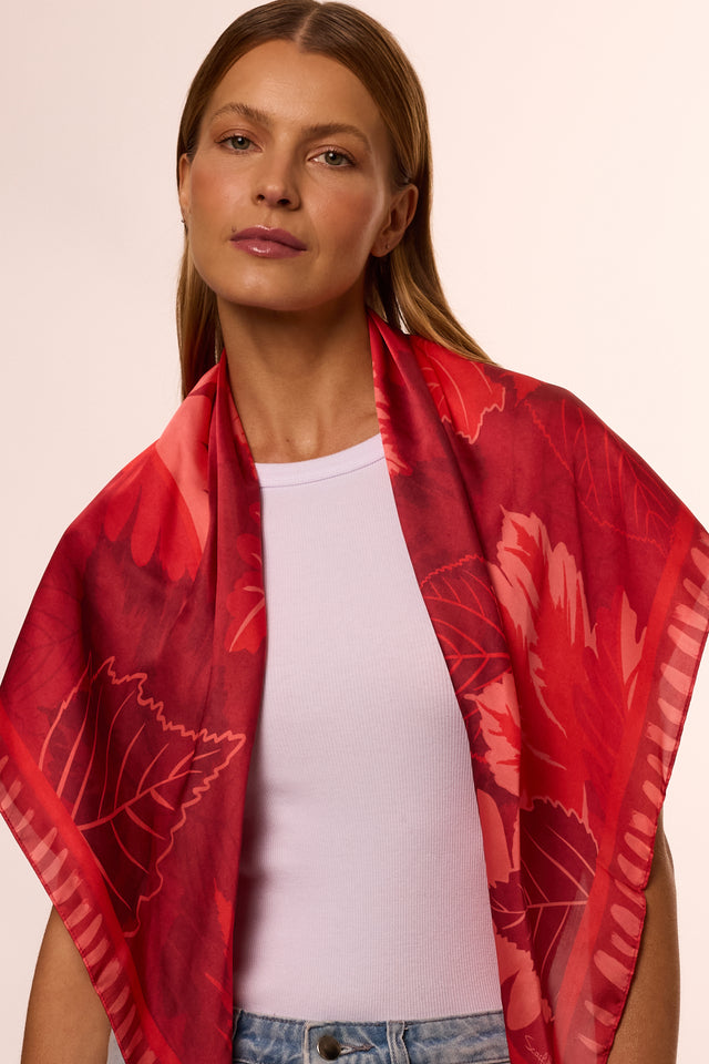 Lenço Intensidade vermelho em cetim de poliéster | 90x90cm