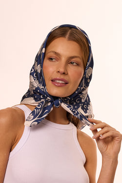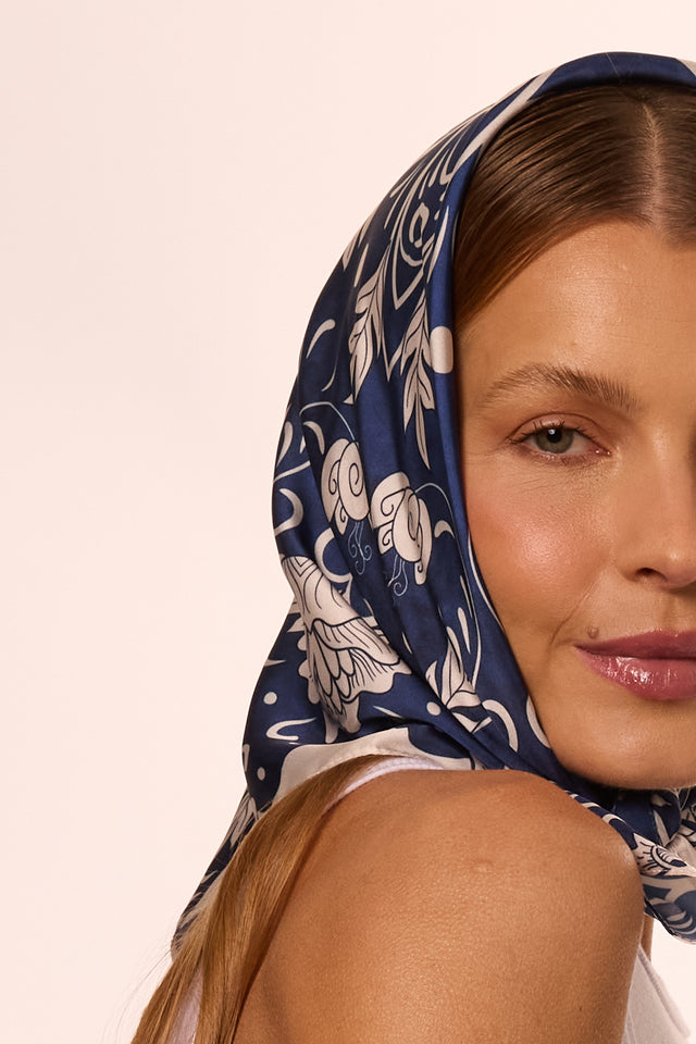 Lenço Mandala Azulejo em cetim de poliéster | 70x70cm