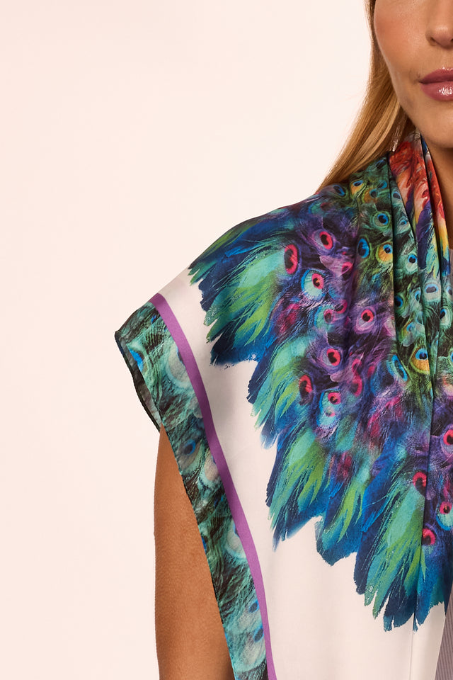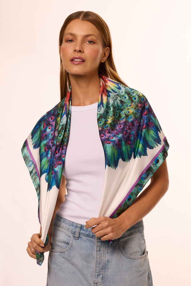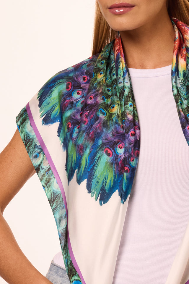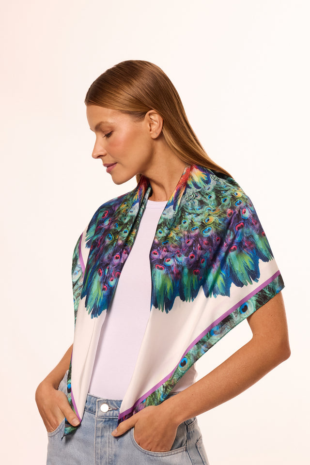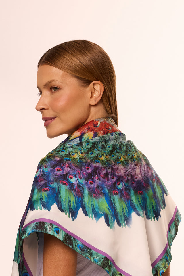 Lenço Mandala Penas em cetim de poliéster | 90x90cm