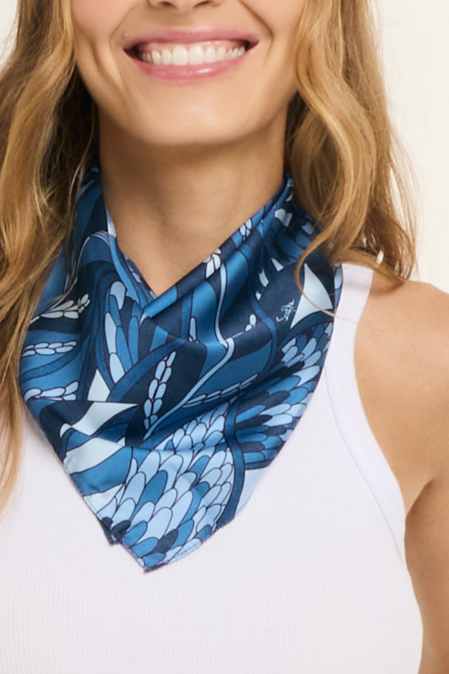 Lenço Ramos de Púrpura azul em cetim poliéster | 50x50cm