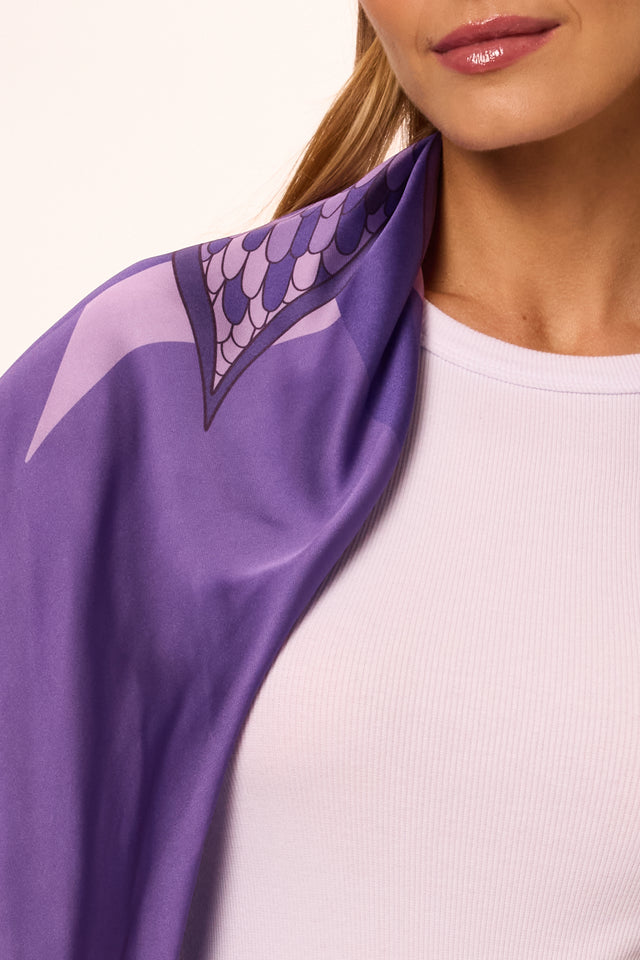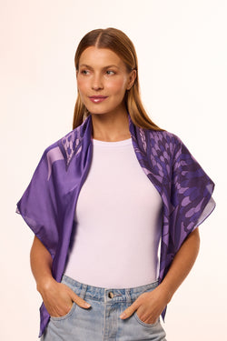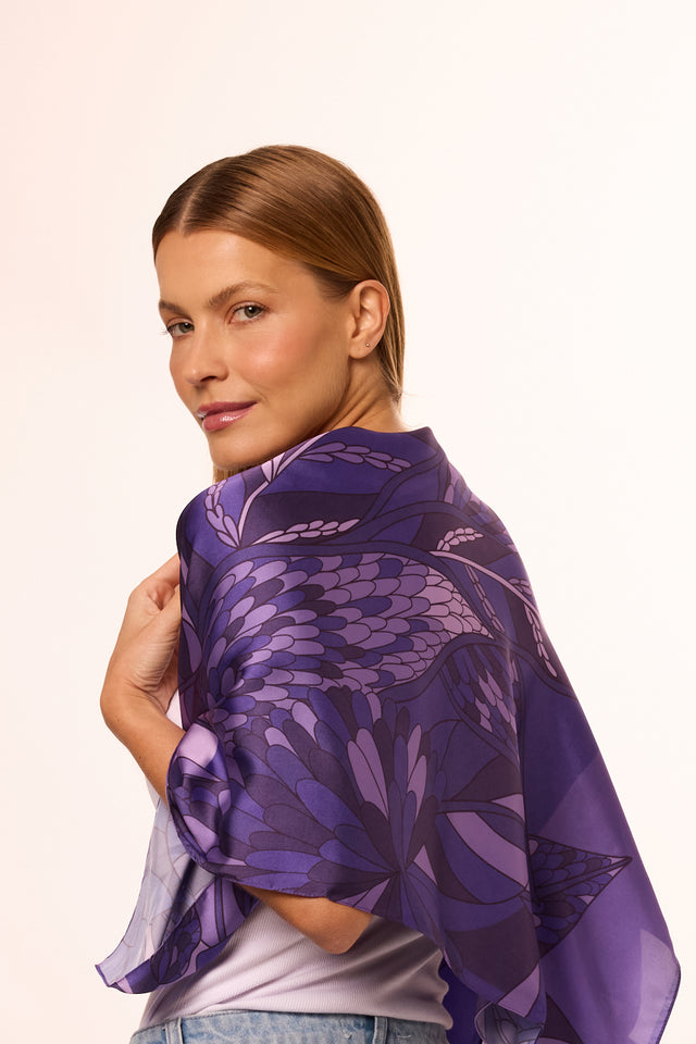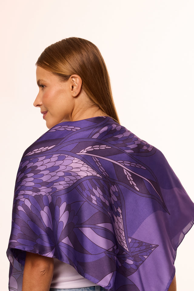 Lenço Ramos de Púrpura roxo em cetim de poliéster | 90x90cm