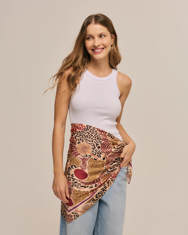 Lenço Texturas do Cerrado areia em cetim de poliéster | 90x90cm