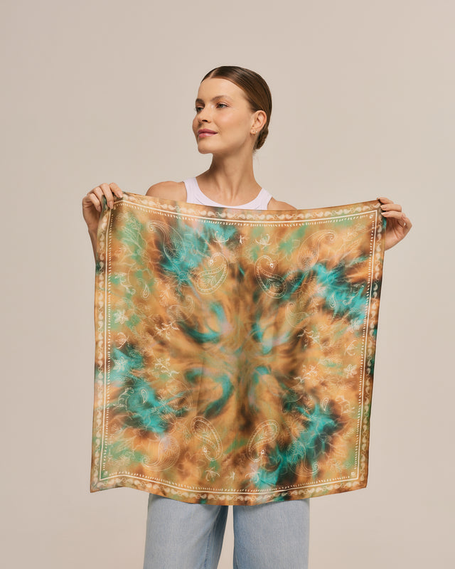 Lenço Tie-Dye em cetim de seda | 65x65cm