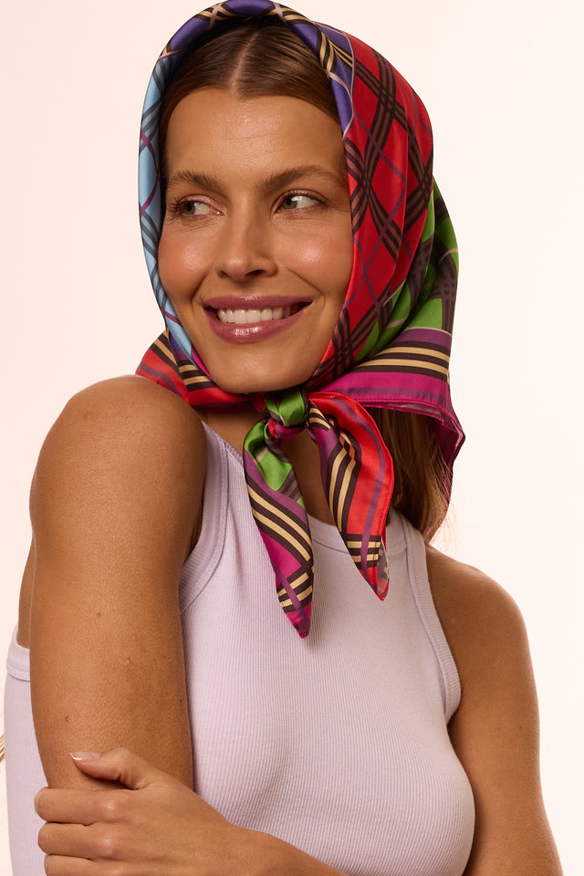 Lenço Xadrez Colors em cetim de poliéster | 70x70cm