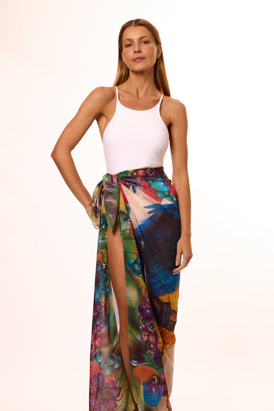 Pareô Arara-azul em mousseline de poliéster | 130x130cm