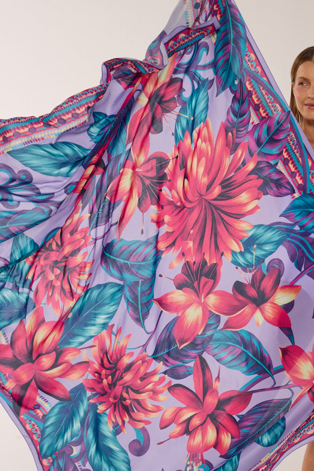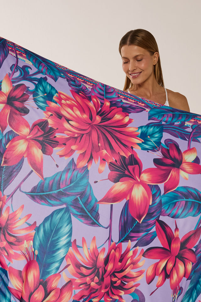 Pareô Flor Flamingo lavanda em viscose | 130x200cm