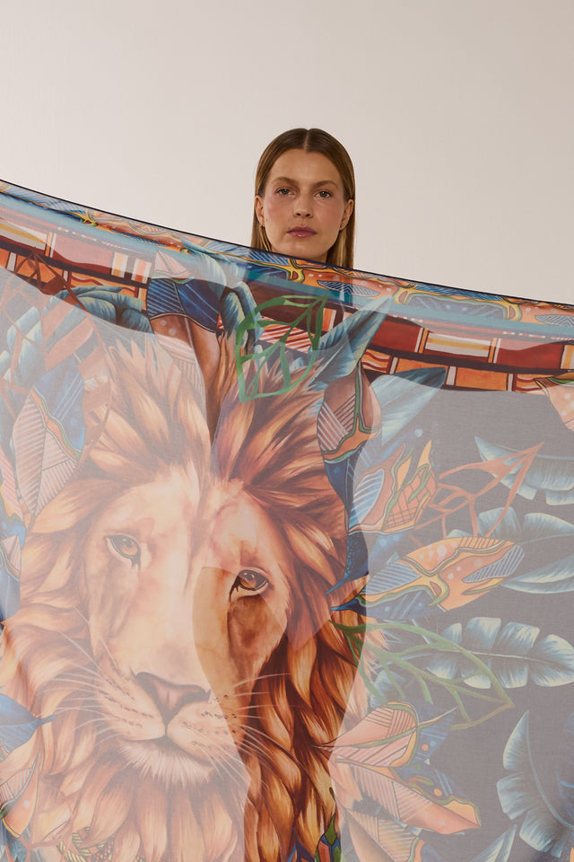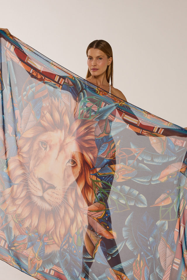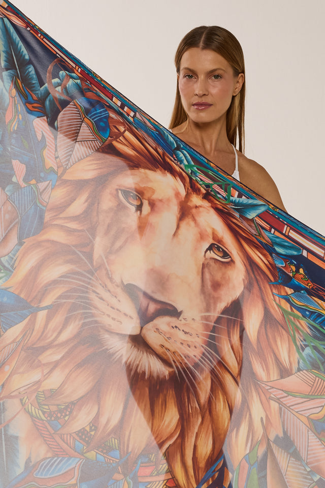 Panneau Tribal Leão em georgete de poliéster | 130x200cm