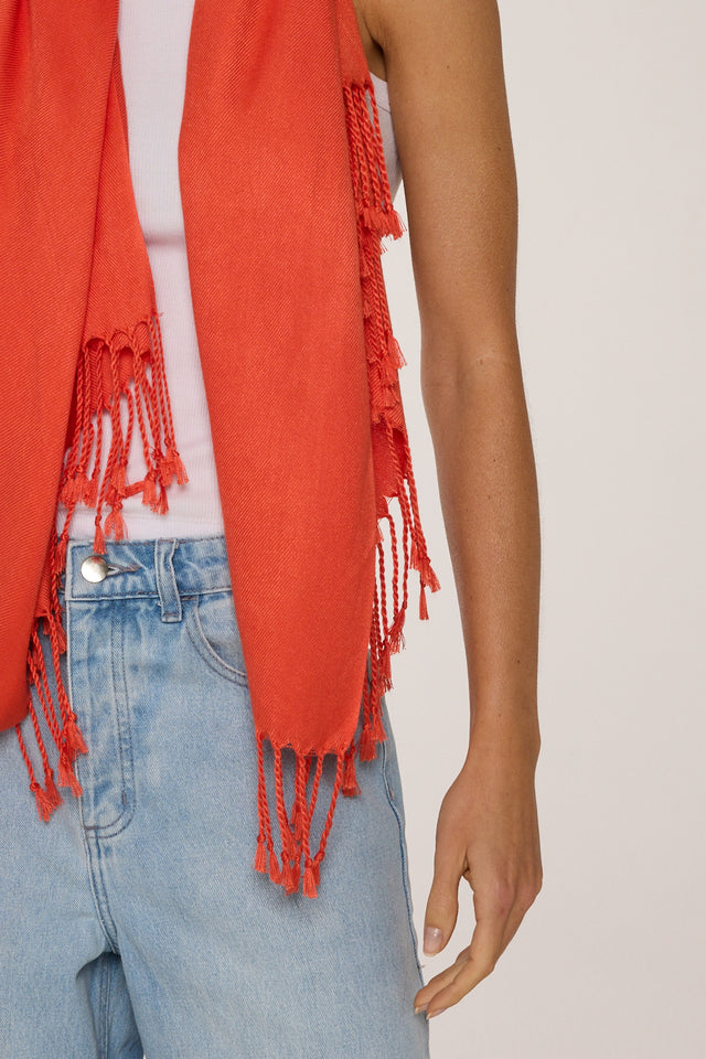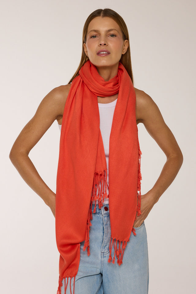 A Pashmina laranja de viscose é a melhor companhia para os dias frios deslizando sobre seus ombros e nunca perder o charme e elegância em todas as ocasiões de uso.